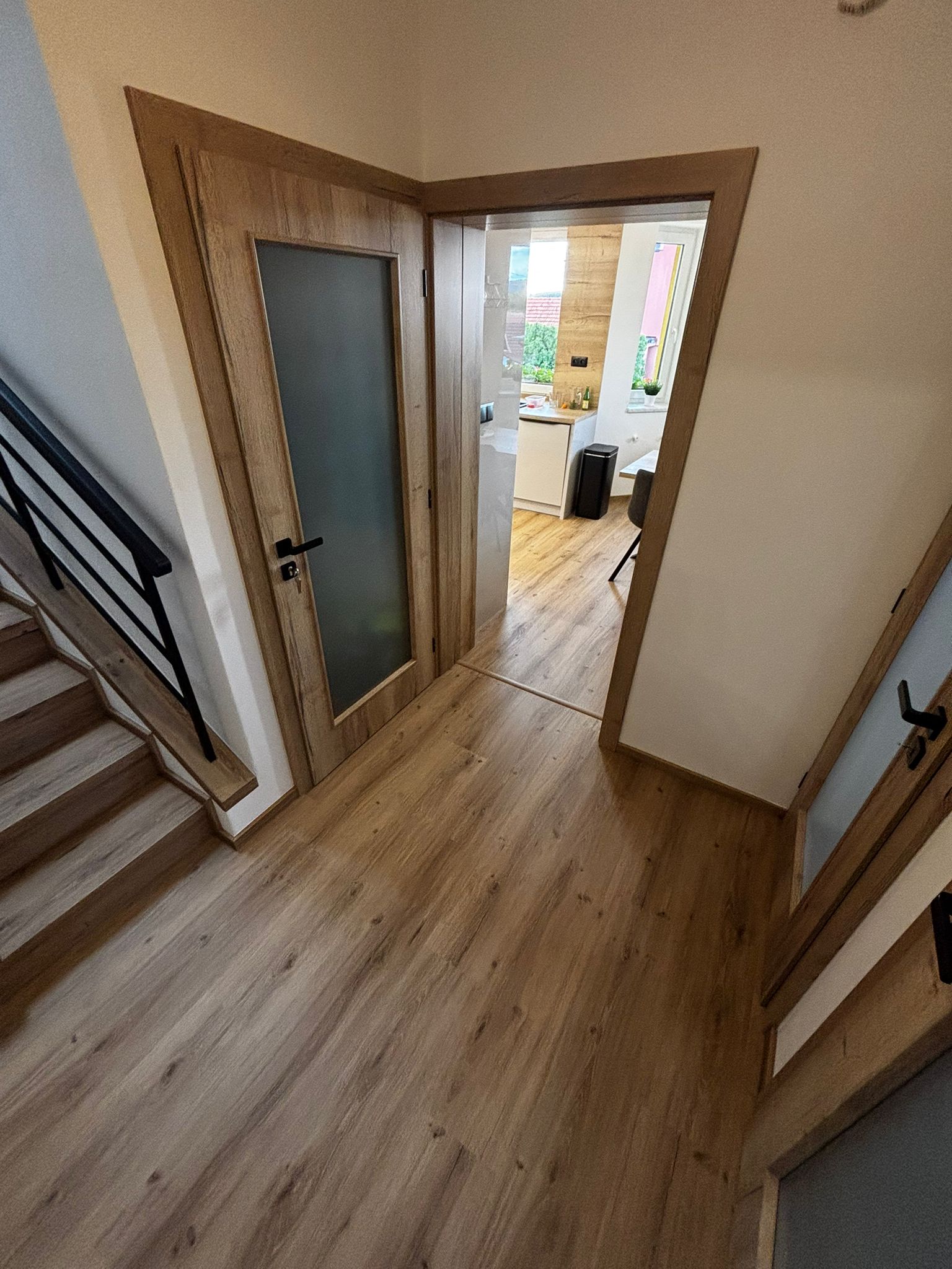 A přesně to taky dostanete – nové dveře, podlahu a schodiště v dokonale sladěném stylu, který potěší oko i nohu.
